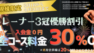 2026年3月18日(火)から2026年4月30日(木)までのご契約で割引を実施致します。新規のお客様はコース料金30%割引、既存会員様はコース料金20%割引致します。お申込みは↓こちらから!